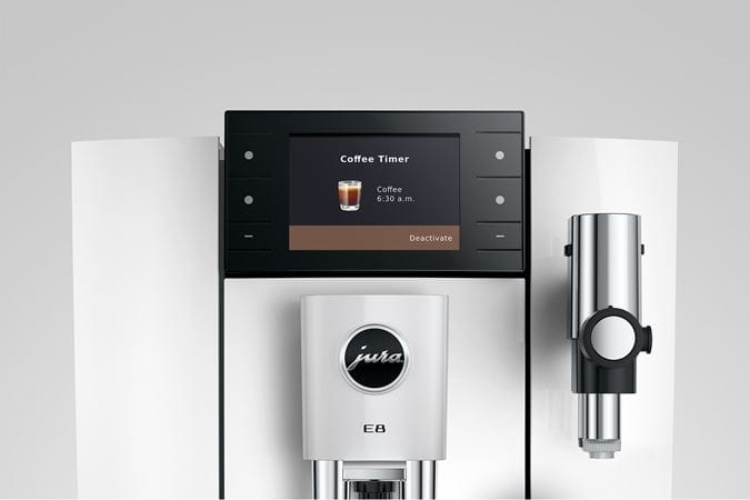 De E8 fascineert ook met intelligente technologie zoals de Coffee Timer. Hiermee kunt u uw ochtendkoffie programmeren via de app J.O.E.® en genieten van vers gemalen en bereide koffie zodra u opstaat.