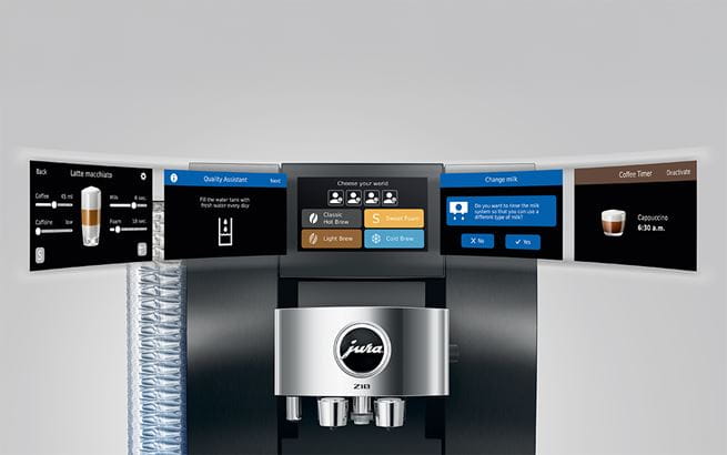 De Z10 is een genot om te bezitten en voldoet aan alle eisen van een designklassieker: Het wordt gekenmerkt door topkwaliteit, tijdloze elegantie en compromisloze functionaliteit. Het elegante golfontwerp accentueert het waterreservoir en geeft de voorkant een convex-concave vorm. Het naar buiten gebogen bedieningspaneel nodigt uit tot interactie, terwijl het kopjesplateau een indrukwekkend podium vormt. Dankzij de ideale hoek onthult het 4,3 inch kleurendisplay zijn volledige schittering en verlicht het de wereld van plezier. Als u naar de Z10 kijkt, ontdekt u in elk detail liefde voor design.
